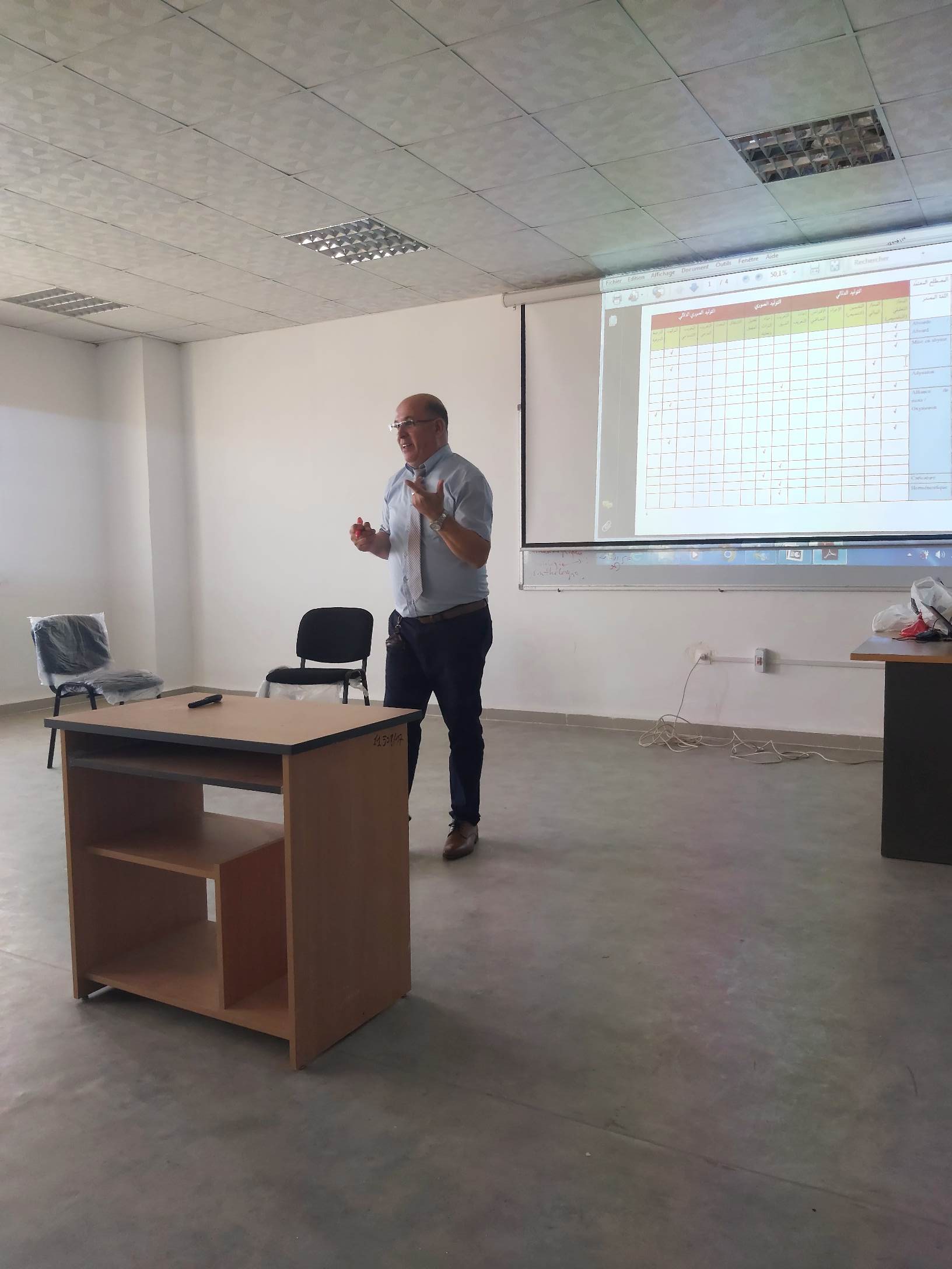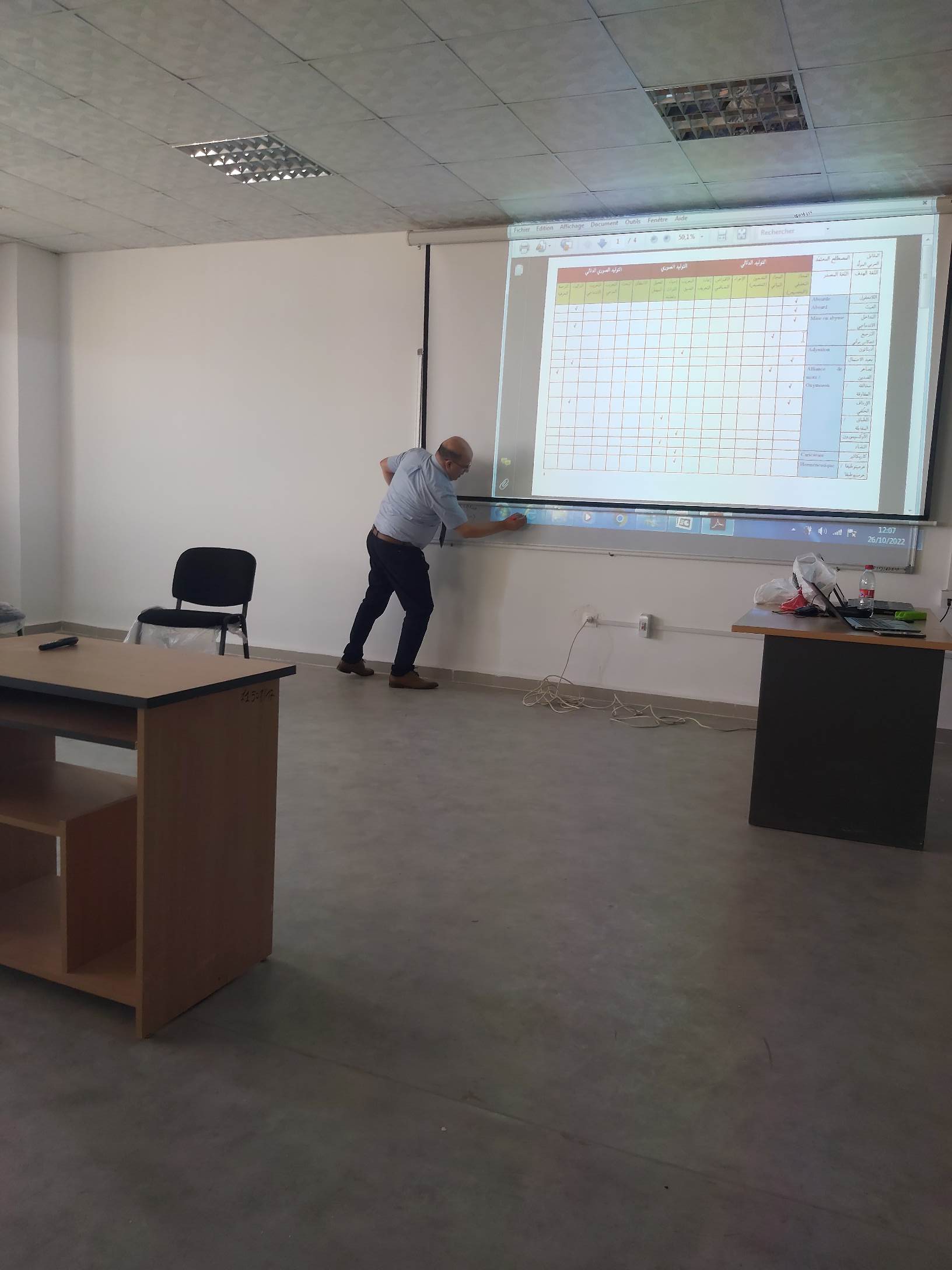 في إطار العمل بالشراكة والتوأمة نظمت فرقتا (المصطلح النقدي: الأبعاد والآليات والمرجعيات) و(نحو تأسيس معجم نقدي للخطاب اللساني العربي)، ورشة تكوينية لفائدة طلبة الدكتوراه، من تنشيط الأستاذ يوسف مقران الذي ألقى محاضرة بعنوان: وصف حال الوضع المصطلحي النقدي في العالم العربي: من تشخيص الواقع إلى توقع العلاج: وذلك يوم 26 أكتوبر 2022، من الساعة العاشرة إلى الساعة الواحدة زوالاً، في قاعة المحاضرات بمعهد اللغة والأدب العربي، المركز الجامعي مرسلي عبد الله ـ تيبازة، حيث عالجت المحاضرة مجموعة من الإشكاليات ذات الصلة بالموضوع وذلك باعتماد المقاربتين: المقاربة اللفظية (Approche Sémasiologique)، والمقاربة المفهومية (Onomasiologique)؛ كما فتح باب النقاش على مصراعيه، وخلصت الورشة إلى جملة مِن نتائج عملية.
